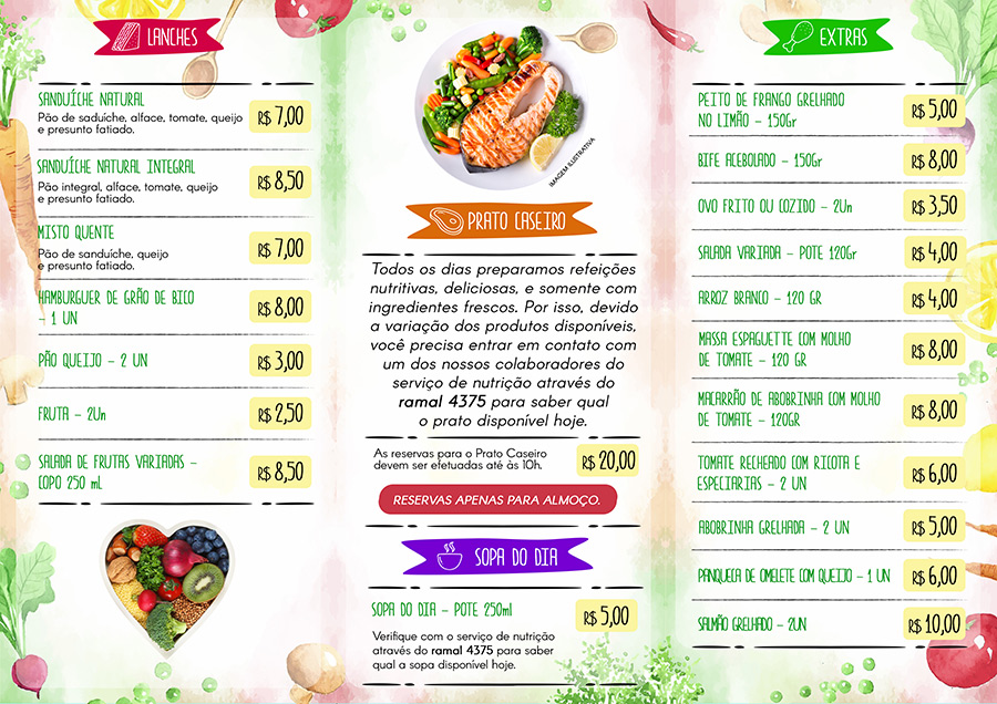 Cardápio desenvolvido para o Serviço de Nutrição do Hospital Santo Antônio.